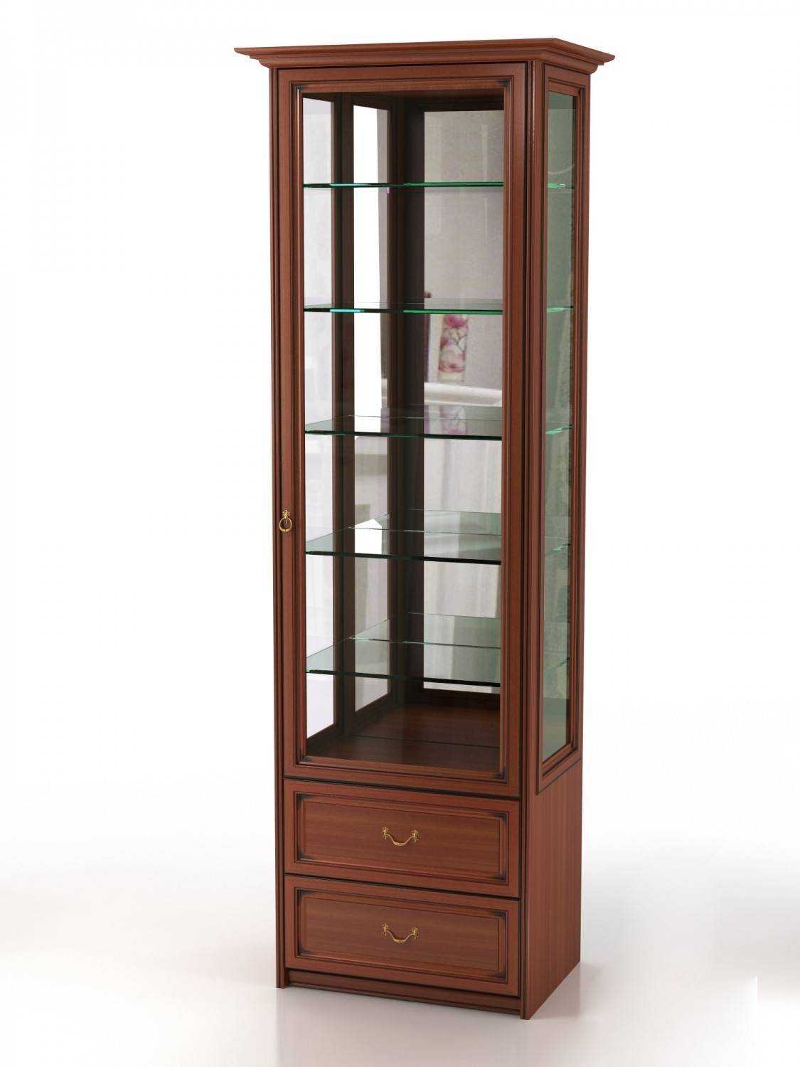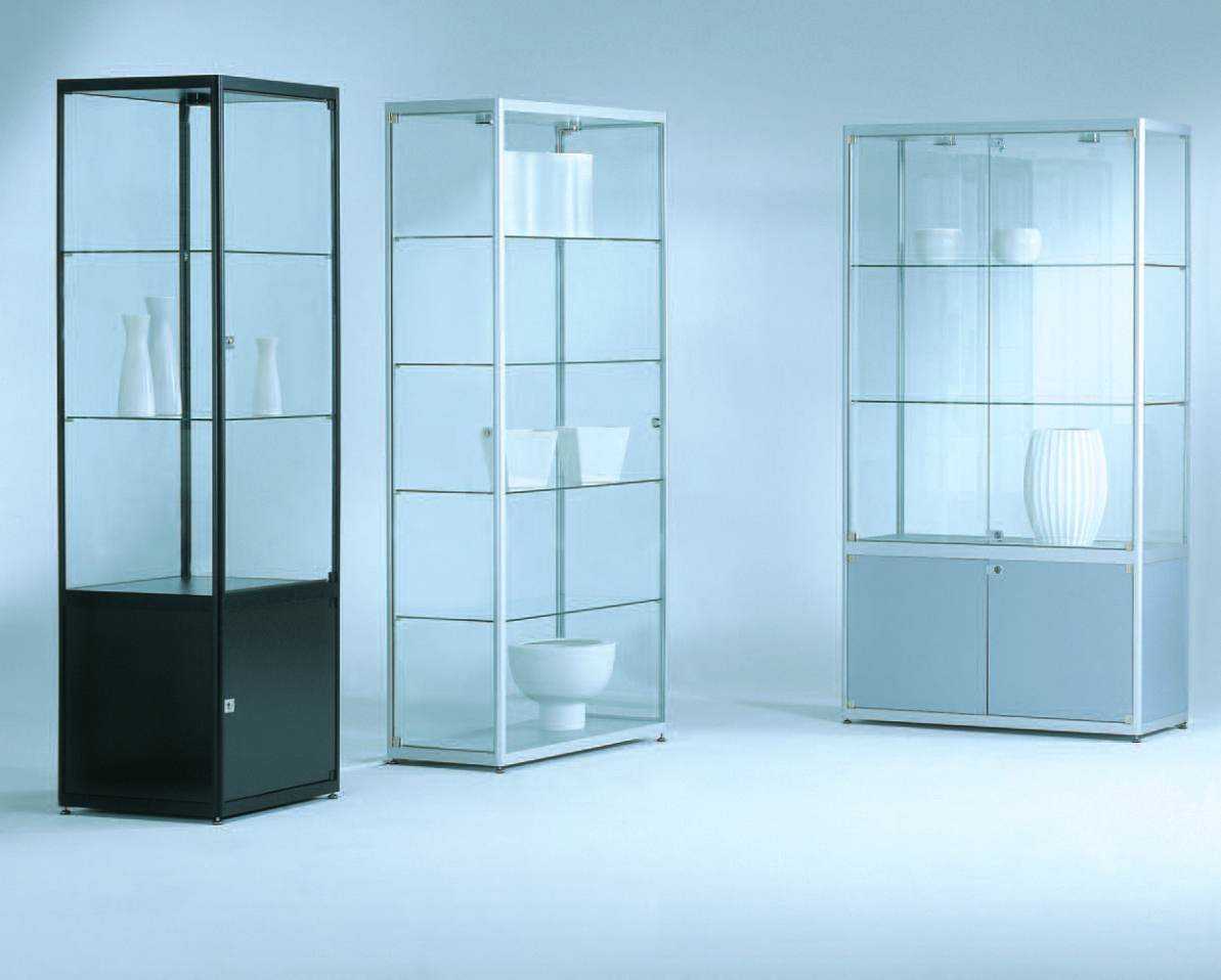 - классическая витрина со стеклом имеет прямоугольную форму и оснащена несколькими удобными полками, изготовленными из прочного стекла;