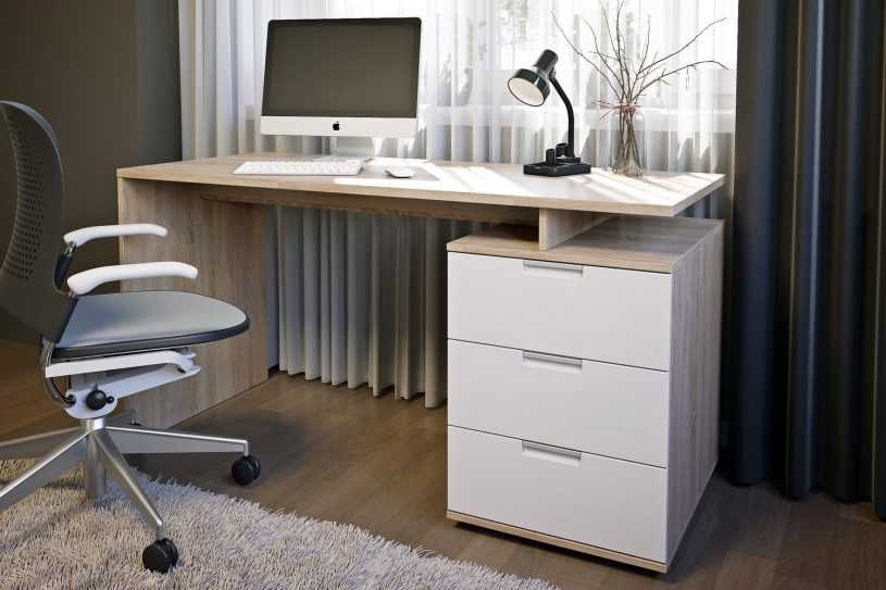 Ни одно рабочее пространство не обходится без места для хранения. Можно купить готовую тумбу для документов или набора ящиков, которые соответствуют идеальной высоте вашего стола. Можно использовать тумбу в качестве одной из ножек.