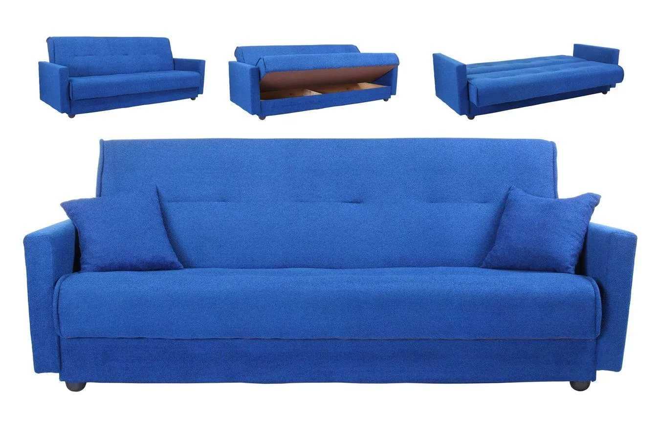 - «Аккордеон» — раскладным является сиденье, поскольку спинка дивана остается неподвижной. Внутри мебели размещены две подушки, формирующие полноценное спальное место.