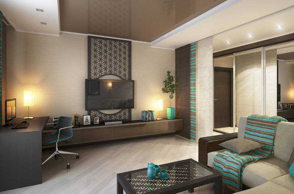 - Оригинальное зонирование пространства. Для того чтобы разделить гостиную на функциональные зоны можно использовать различную по цветовой гамме отделку, разное освещение. Перегородки, колонны и арки используются лишь в случае, если гостиная совмещена с кухней.