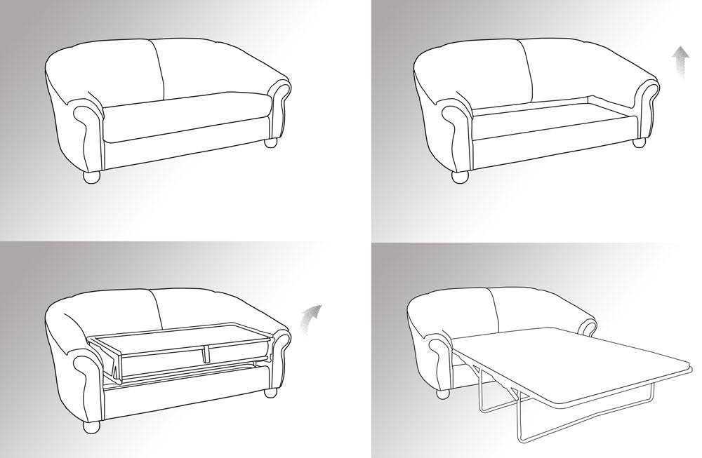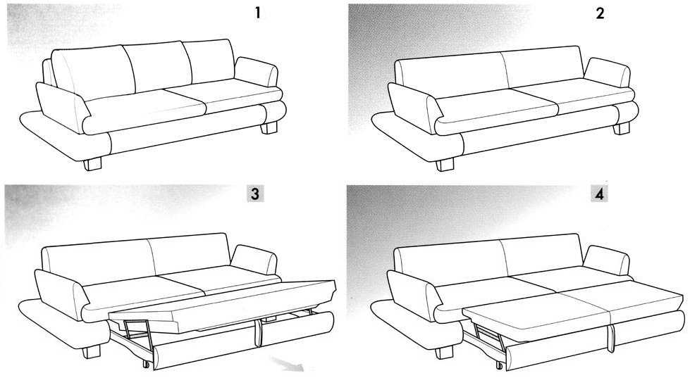 Диваны-кровати имеют несколько модификаций, каждая из которых трансформируется определенным образом: