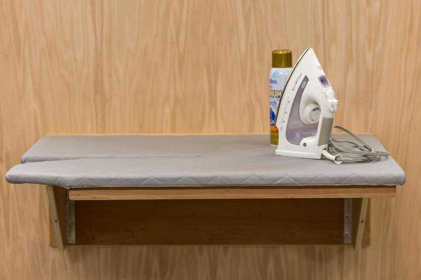 Лень каждый раз раскладывать гладильную доску, чтобы погладить пару небольших вещей? Не проблема. Сделайте откидной настенный стол, который будет выполнять функцию гладильной доски.