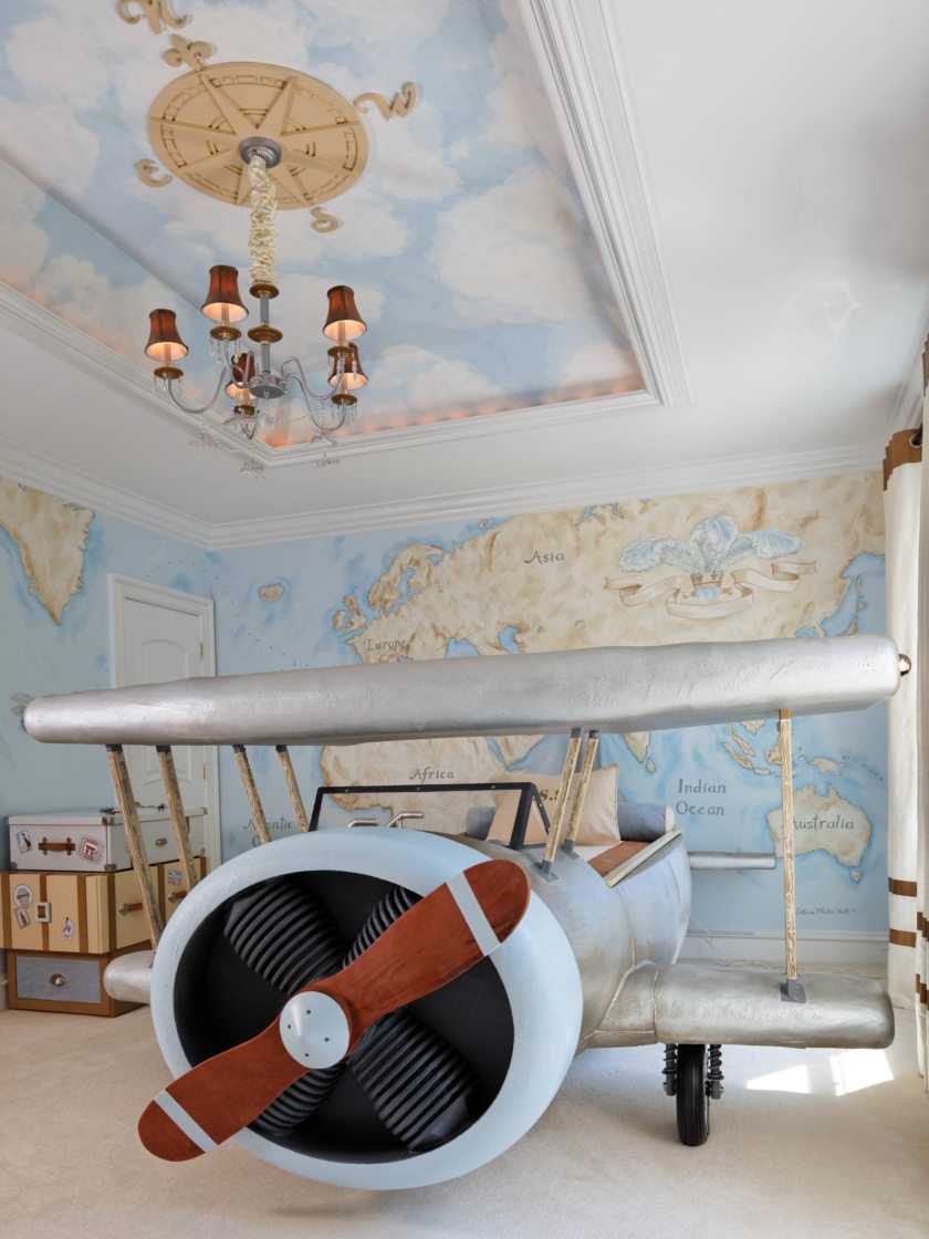 Детям очень нравится подвесное спальное место, они с удовольствием отправляются отдыхать на кровать, которая крепится к потолку. Особенно нравится мальчикам детская подвесная кровать в форме корабля, подвешенная на цепях (да и девочки, наверное, не откажутся окунуться в мир пиратов и морских приключений). Как правило, под спальное место отводится носовая часть корабля, но также оно может быть выполнено в форме полноценного судна с носовой частью и кормой.