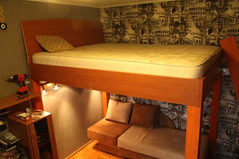 | Мансарда | Модель с комбинированным креплением | Изголовье крепят к стене, противоположную сторону подвешивают к потолку |
