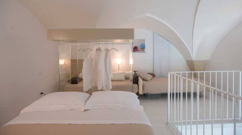 Стильная кровать и рабочее место на 2 ярусе квартиры в стиле лофт