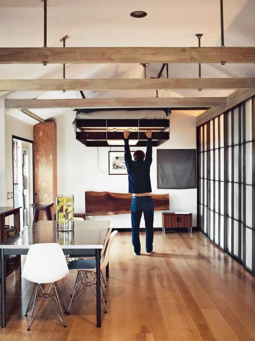 Кровать под потолком – отличный способ оптимизировать пространство и хорошая возможность разнообразить привычный и надоевший интерьер. Такое изделие отлично справится с зонированием и позволит получить полноценный здоровый сон.