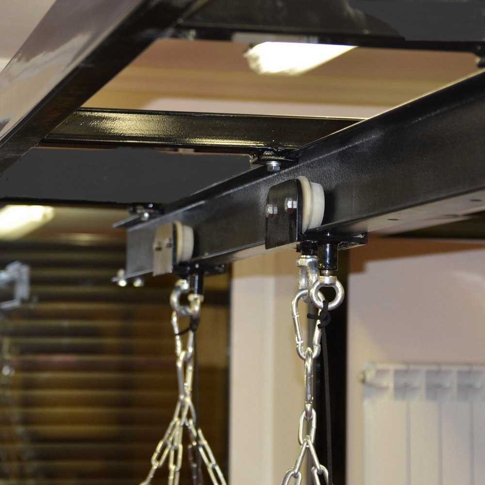 Этот способ предполагает, что кресло будет монтироваться не непосредственно к потолку, а к специальным конструкциям, закрепленным на нем. Как правило эти конструкции протягиваются через всю комнату и для большей надежности закрепляются сразу в нескольких местах.
