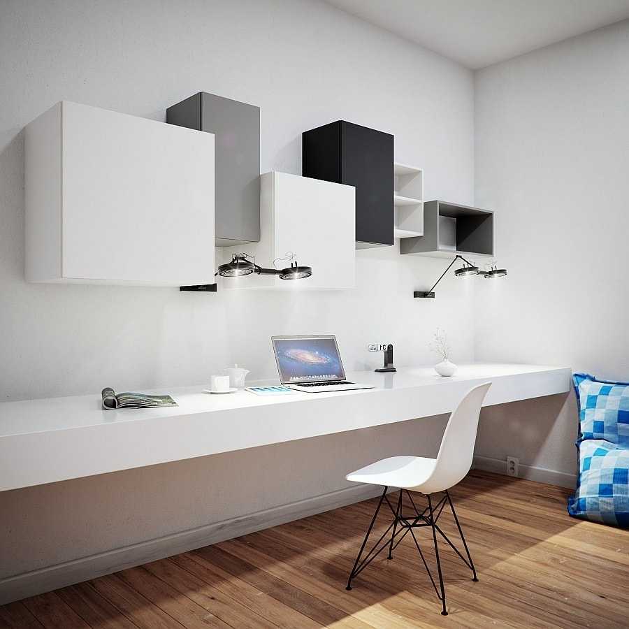 Еще один критерий при выборе места расположения полки над столом — объем свободного пространства в помещении. Например, для малогабаритных комнат отлично подходят многоярусные или угловые модели.