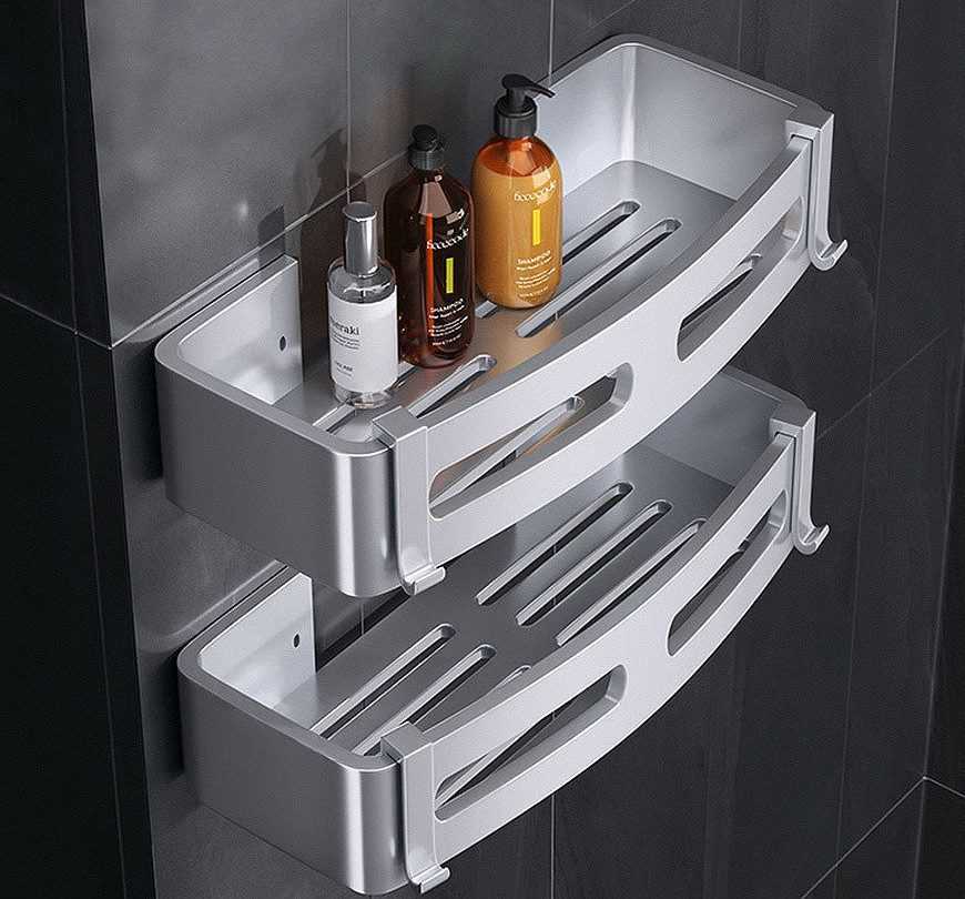 Самый удобный вариант для небольших санузлов – многоярусные угловые полки. Они позволяют выгодно задействовать неиспользуемое пространство.