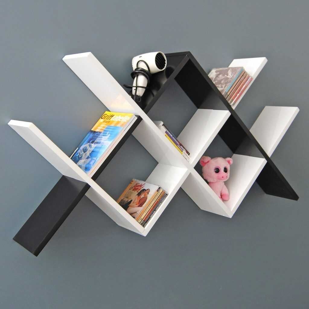 Также желательно, чтобы замысловатая полка располагалась на однотонном фоне – так вы подчеркнете ее красоту и сделаете одним из основополагающих акцентов.