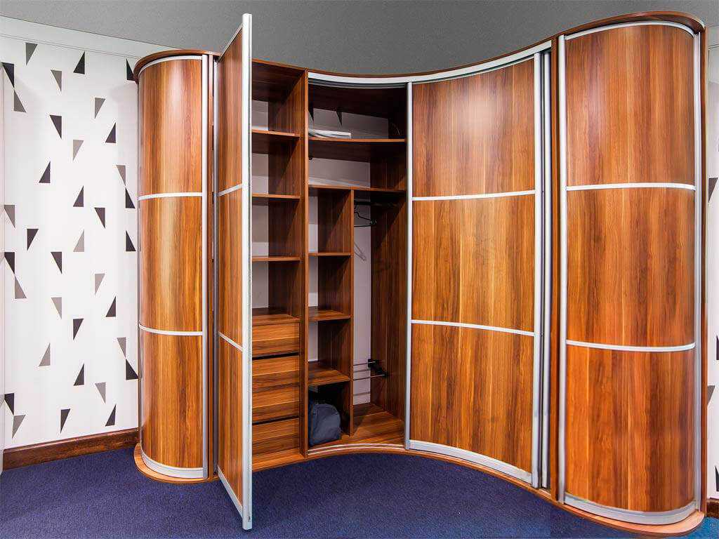 Радиусные шкафы купе для спальни: фото шкафов радиусного типа