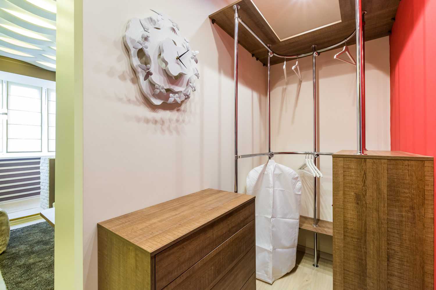 Единственным важным отличием здесь будет наполнение платяного отсека. Если в число обитателей квартиры не входят рослые люди, то возможна установка штанги традиционным способом.