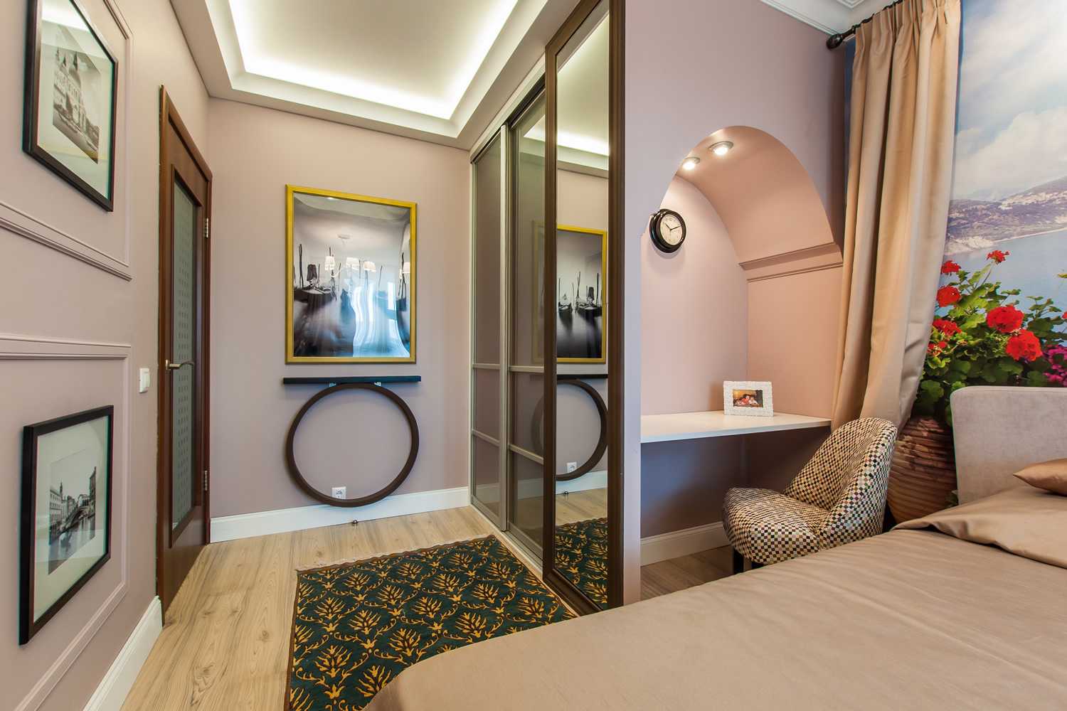 Зеркало нам не нужно, его в красивой рамке лучше повесить напротив, а вот фасад, выглядящий аккуратно и респектабельно всегда будет в цене.И на последнем примере, вы можете увидеть иллюстрацию использования в одном пространстве и встроенного большого гардероба, и отдельно стоящего шкафа