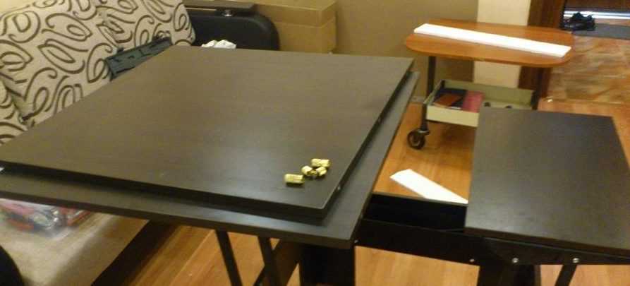 - Части стола складываются. Они должны плотно прилегать друг к другу, образуя гладкую поверхность.