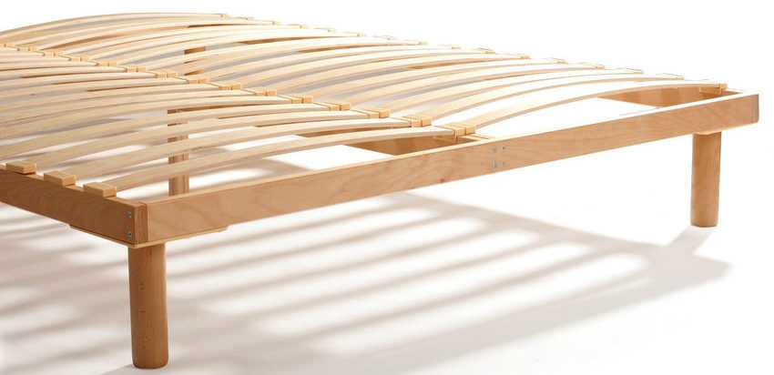 Недостатки у реечного основания для кровати тоже есть. Их можно рассмотреть на примере самой распространенной и недорогой конструкции с березовыми или сосновыми перекладинами.