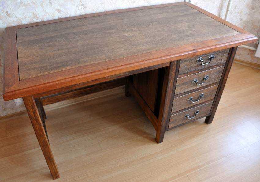 После сборки стол покрывается морилкой и лаком