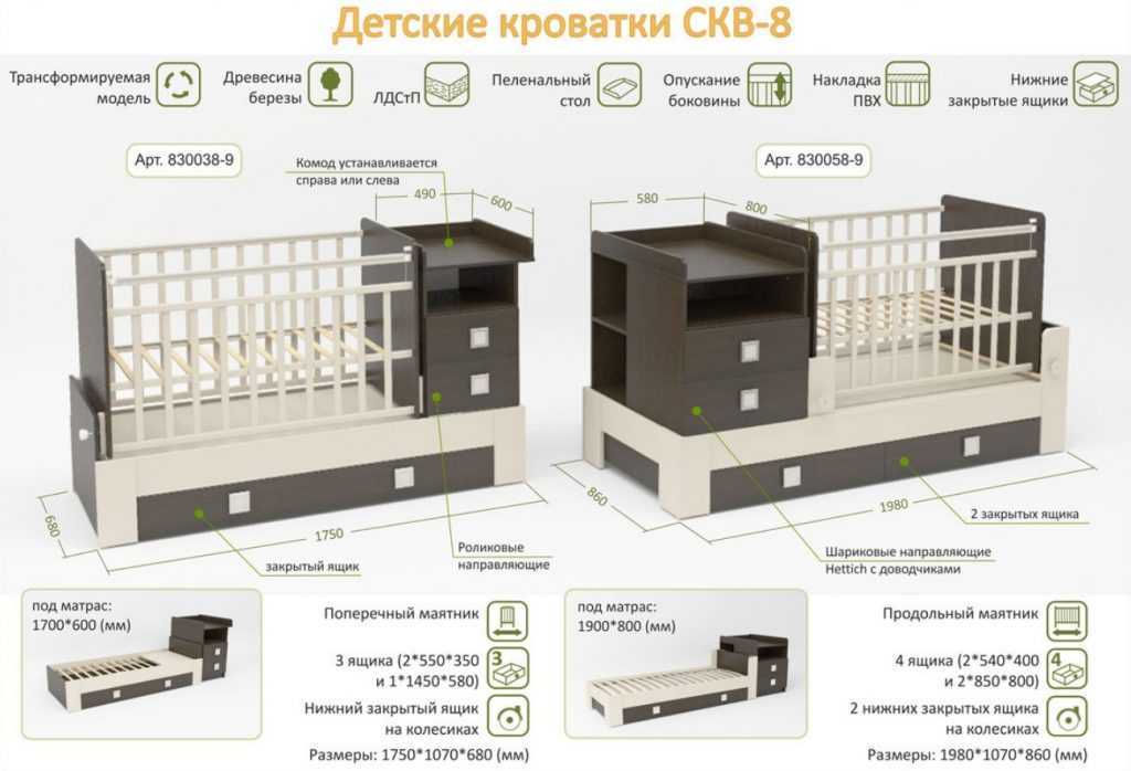 Трансформер отличается тем, что помимо ложа, содержит еще и емкости для хранения вещей. Также он может изменяться в зависимости от возраста ребенка.В зависимости от возраста ребенка, высота кроватки может меняться.