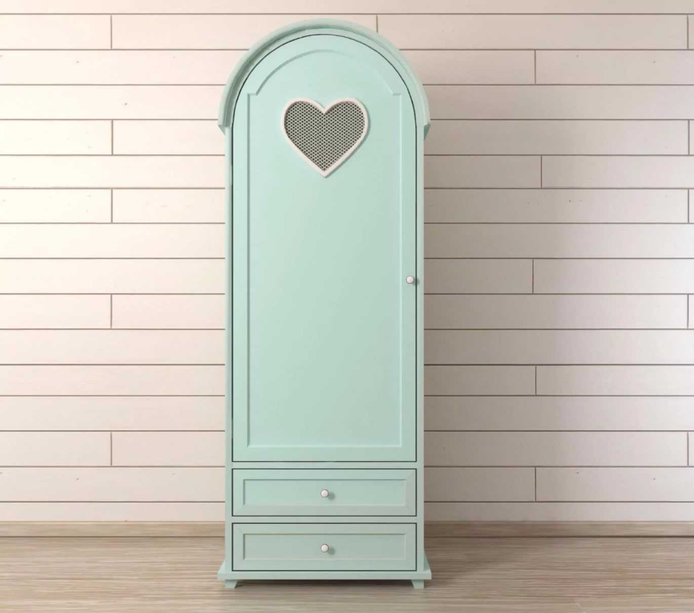 - шебби шик — интерьер формируется винтажными или антикварными распашными шкафами, обязательно отреставрированными (перекрашенными или украшенными декоративной росписью). Отличный декор обновленных изделий – имитация потертости, сколов краски. Цветовая палитра выбирается неярких нежных оттенков – розовый, размыто-зеленый, мятный. Мебель этого стиля обязательно должна быть деревянной. Изделия должны быть небольших размеров;