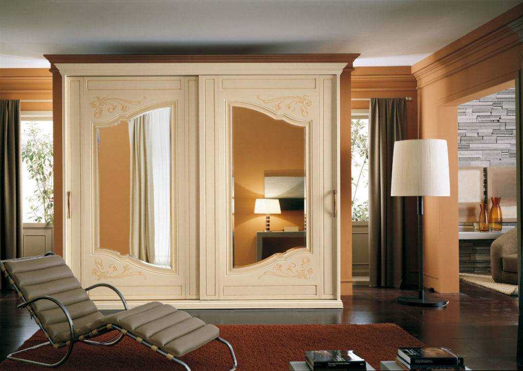 - распашные шкафы в стилях барокко или рококо выделяются изысканностью и роскошью. На фасадах дверей обязательно присутствует рельефный декор. Подобная мебель подчеркивает достаток владельца, поэтому выпуклые элементы фасада покрывают золотой краской. Резные края зеркальной вставки также обязательно украшаются позолотой. Желательно, чтобы изделия имели гнутые ножки и украшались затейливыми бронзовыми или позолоченными ручками. Мебель чаще всего выполняется в светлых тонах: белый, голубой, песочный. Для изготовления предметов используется древесина мягких пород, допускающая легкую обработку;