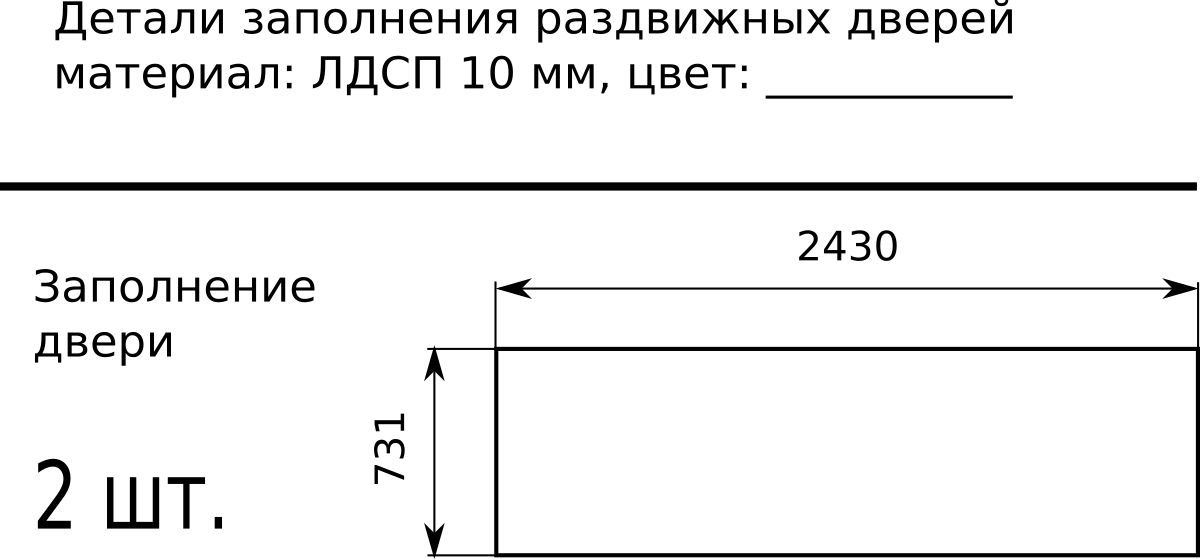 После того, как рассчитали размеры всех деталей заполнения и дверей шкафа-купе, можно переходить к заказу деталей из ЛДСП.