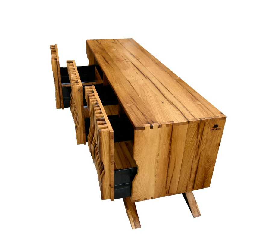 Естественно, не возбраняется использование комодов из МДФ, ДСП (древесно-стружечной плиты), ЛДВП (ламинированной древесно-волокнистой плиты), натуральной древесины. Но в этом случае желательно выбирать модели, в которых эти материалы гармонично комбинируются с присущими современному стилю пластиком, металлом, камнем или стеклом.