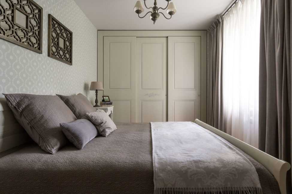 Распашной шкаф в серых тонах для интерьера спальни в классическом стиле