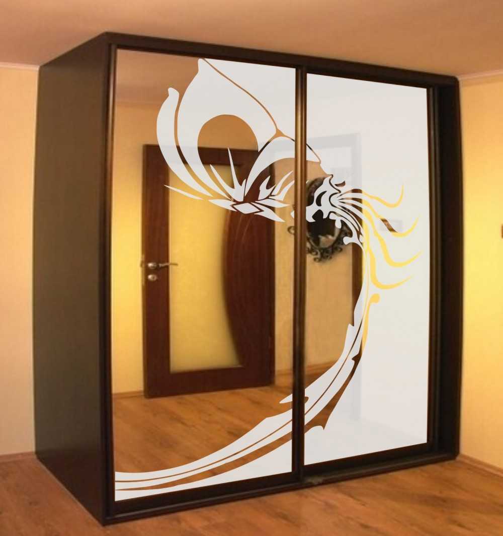 На встроенном или прямом шкафу можно применить дизайн, похожий на кухонный «фартук». Это значит, что рисунок будет расположен лишь по центру, а другие части створок шкафа будут окрашены в подходящий цвет.