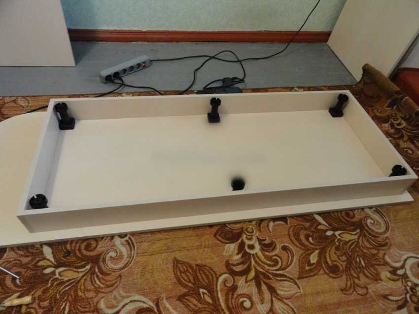 Проще устанавливать регулируемые ножки. Сначала нужно срезать заглушки из пластмассы, а потом вкрутить опоры в отверстия, которые были ранее подготовлены.