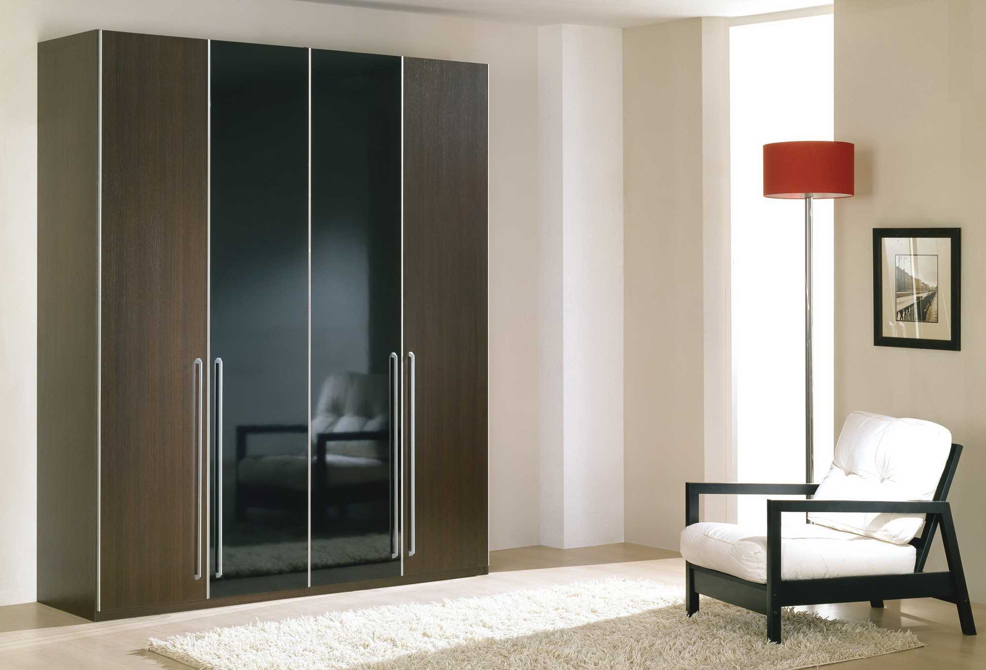 - Одежные шкафы с зеркалами на дверцах хороши в прихожих, коридорах или маленьких спальнях. Зеркала добавляют света и визуально расширяют пространство. Новые технологии позволяют покрывать зеркальное стекло особой пленкой, которая в случае повреждения препятствует разлету осколков.