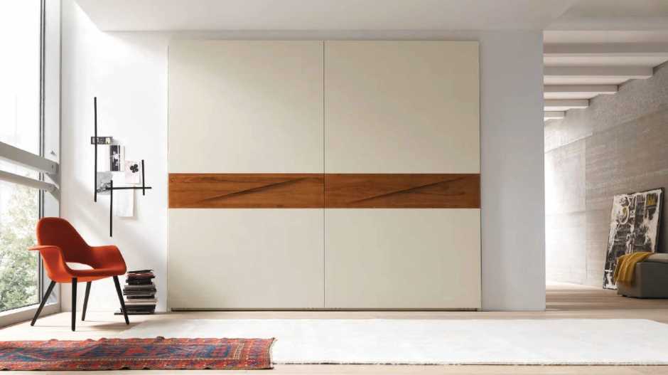 Еще один вид — раздвижная дверь современных шкафов, которая не только смотрится эффектно, но также позволяет максимально эффективно использовать конфигурацию помещения. Это универсальный вариант, дизайн которого необычен, поэтому часто используется для современных платяных и встраиваемых шкафов.