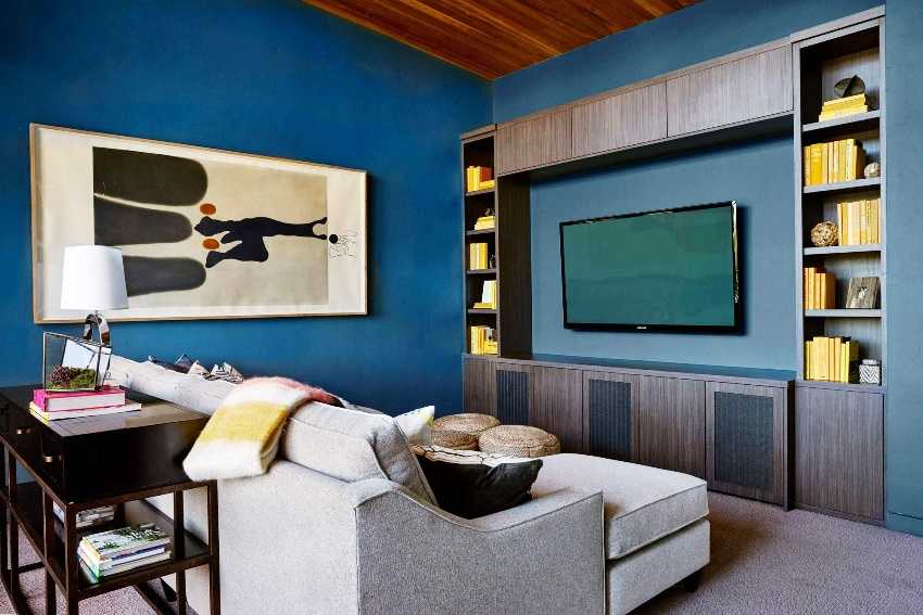 - встроенными — предназначены для установки в различных нишах и выемках. Обычно создаются на заказ для конкретного места, поэтому обладают идеальными размерами для конкретного участка гостиной.