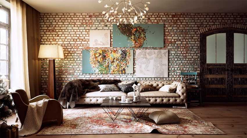 Оформление зала в популярных стилистических решениях.