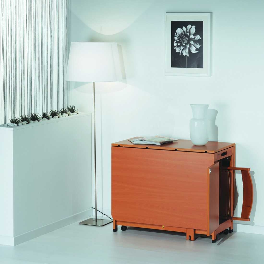 | Стол-книжка-трансформер | «Трансформеры» не ограничиваются простым превращением в обеденный стол. Они могут выполнять роль небольшого комода, тумбы, шкафчика и даже бара. |