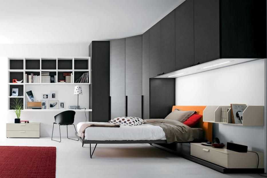 - Модульные — частный случай корпусной мебели. Состоит из мелких составляющих – модулей. При необходимости секции могут меняться местами. Подходящий вариант для спальни нестандартной планировки.