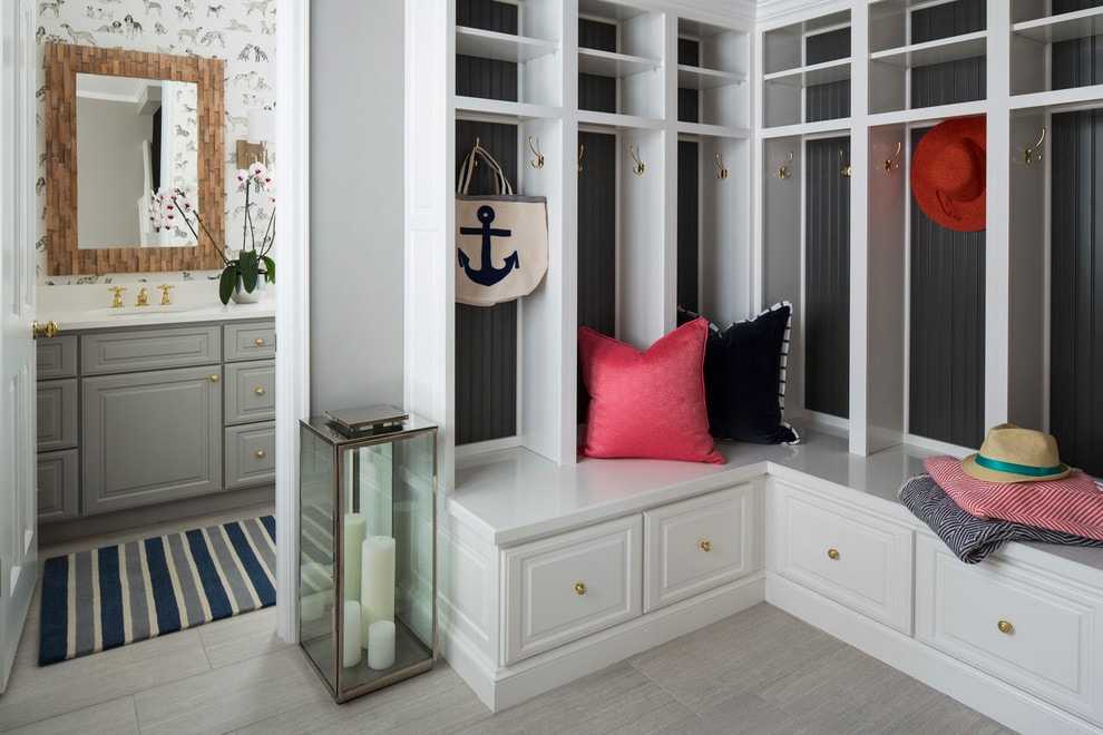 Этот отсек изготавливается в виде полки. Она считается труднодоступной, поэтому должна быть достаточно мощной. Здесь следует хранить те принадлежности, которые не придется вынимать каждый день. На верхних полках можно хранить сезонную одежду. Но, чтобы постоянно не добираться до них со стула, позаботьтесь об организации механизма, который будет регулировать высоту конструкции.