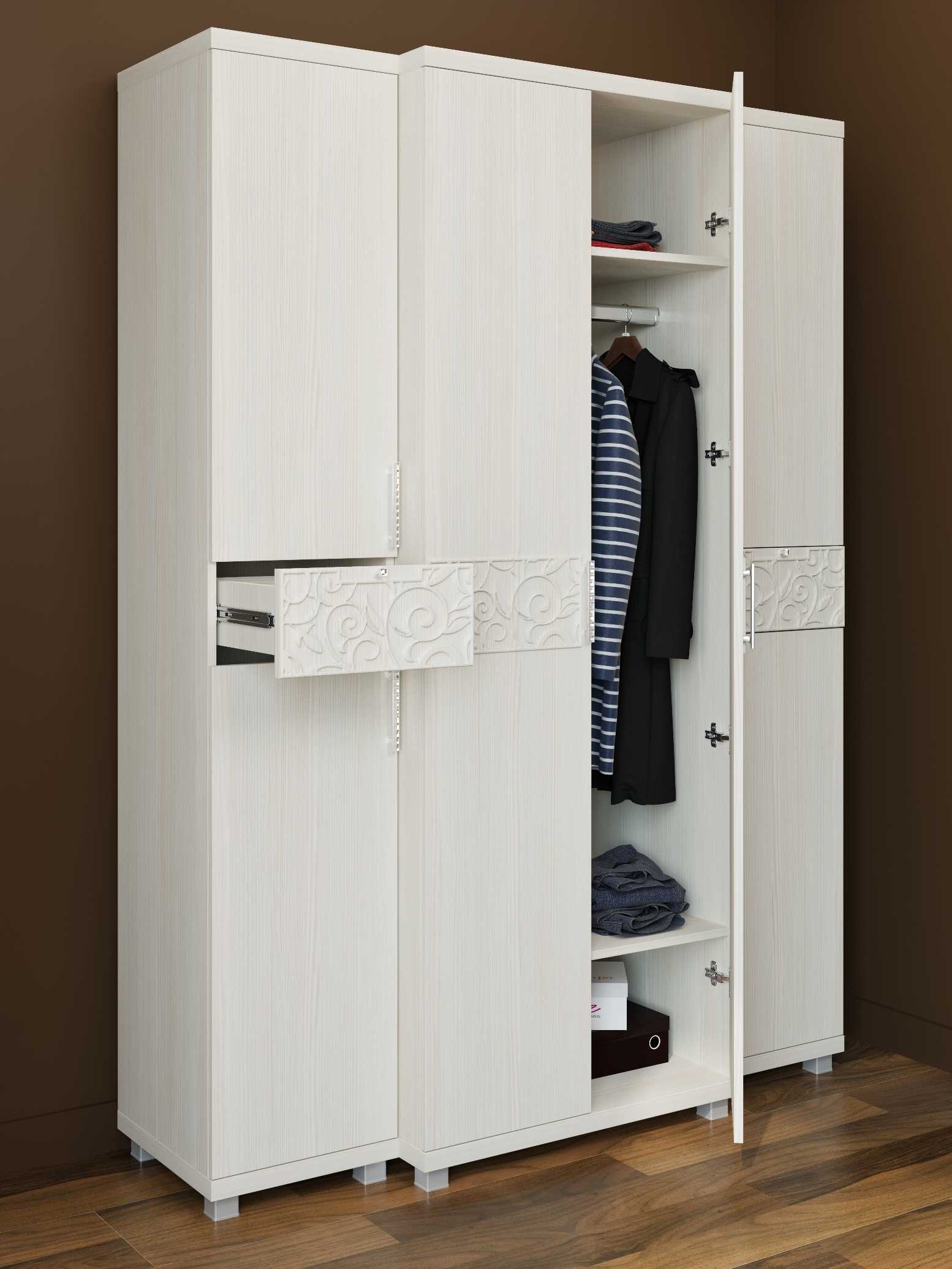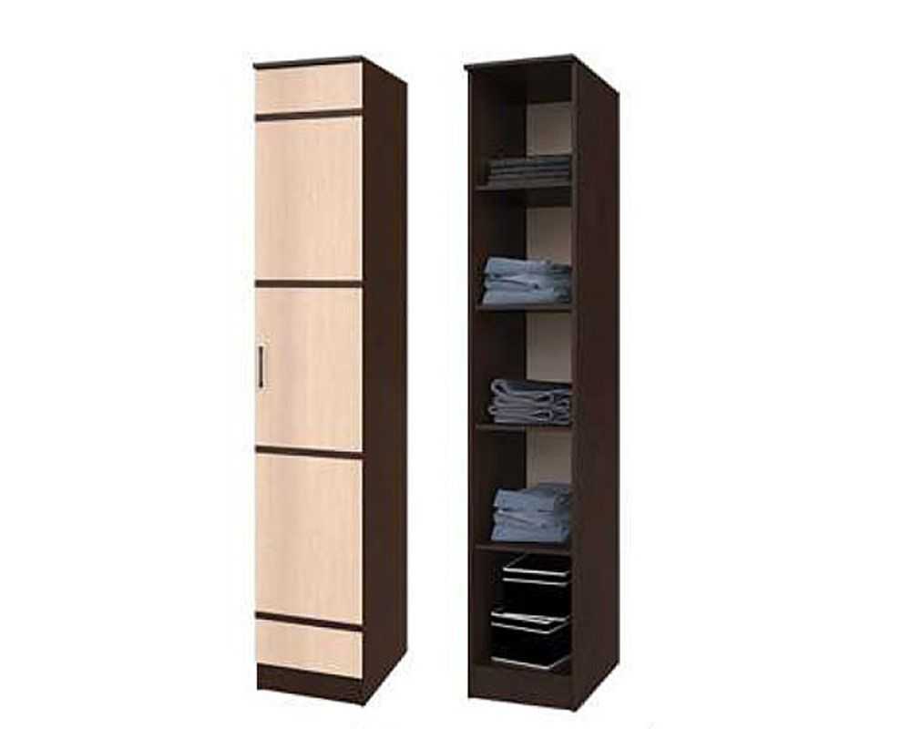 - многообразие моделей — изделия отличаются не только цветом исполнения, но и вариативностью внутреннего пространства. Модель узкого типа делится на отсек для обуви, постельного белья, верхней одежды, отделение с крючками и антресоли. Все наполнение сохраняется – изменяется лишь глубина изделия;