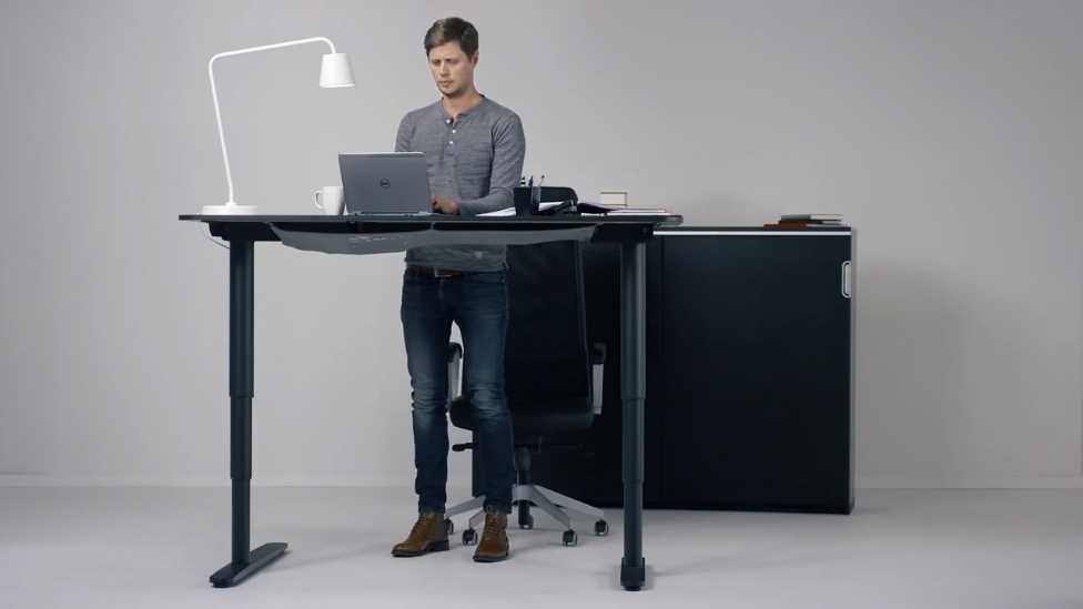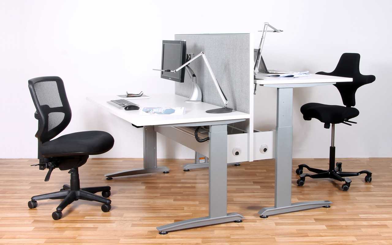 - Офисные модели. Меняющие свою высоту столы для офиса — наиболее функциональные представители линейки. Их оснащают всевозможными полками, розетками, подставками для ног и прочими дополнительными элементами, делающими работу сотрудника максимально комфортной. Впрочем, нередко встречаются и бюджетные варианты — лаконичные столики без излишеств.