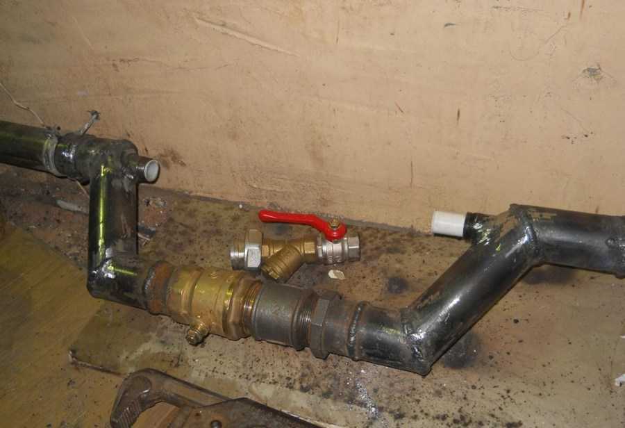 Важно не забыть врезать также запорные краны. Также нужно быть внимательным к сторонам трубы – лучше их не путать.. Также нужно быть внимательным к сторонам трубы – лучше их не путать