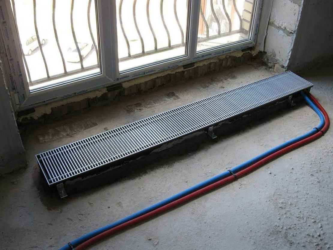 Встроенные конвекторы монтируют в пол по периметру помещения, основное внимание уделяя линиям вдоль окон. Собственно, в первую очередь они и предназначены для установки данной системы отопления