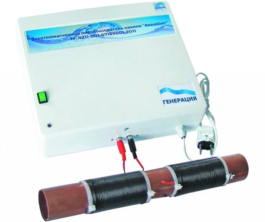 Такие приспособления монтируются на трубы и имеют вид накладки. Под влиянием магнитного или электрического пола отложения солей перестают сцепляться с поверхностями и выводятся в отстойник.