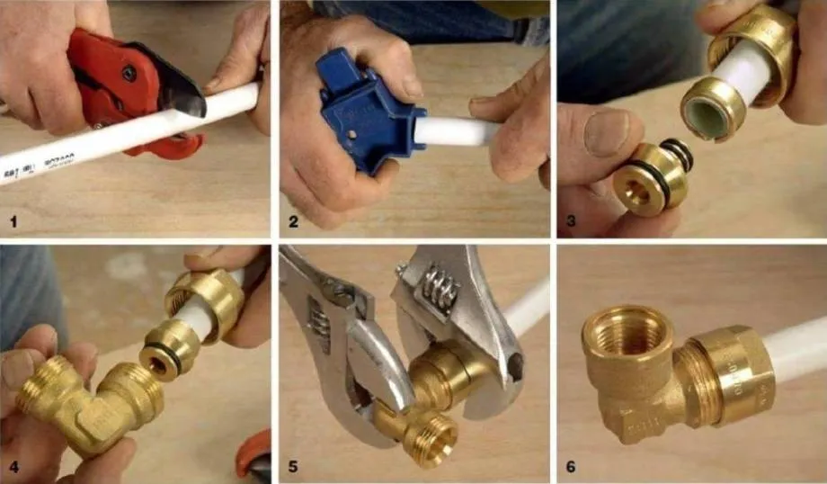 Достоинством компрессионных фитингов является отсутствие потребности в специальном оборудовании, весь монтаж производится с помощью гаечных и разводных ключей. Поскольку соединение сборно-разборное, то при необходимости может ремонтироваться.