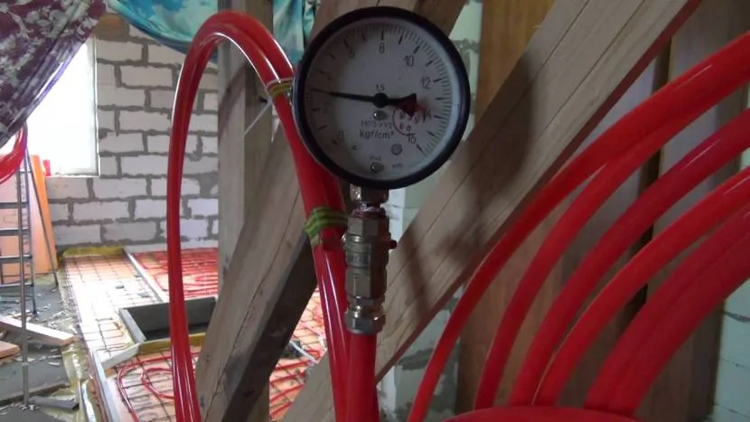 - В частном доме первичная проверка системы выполняется на этапе подготовки дома к сдаче в эксплуатацию. Диагностика трубопровода в штробах и контуров теплого пола проводится до заделки и заливки стяжки. Когда раствор окончательно высохнет, рекомендуется провести дополнительные гидравлические испытания, чтобы выявить и устранить возможные протечки до укладки дорогостоящего чистового материала.