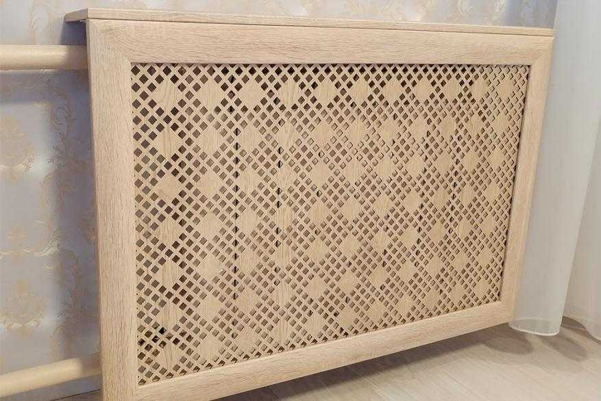 Для изготовления декоративного экрана для радиаторов отопления используют практически любой материал, важно, чтобы он закрывал неприглядные грани устаревшего оборудования и имел достаточную перфорацию для хорошей теплоотдачи