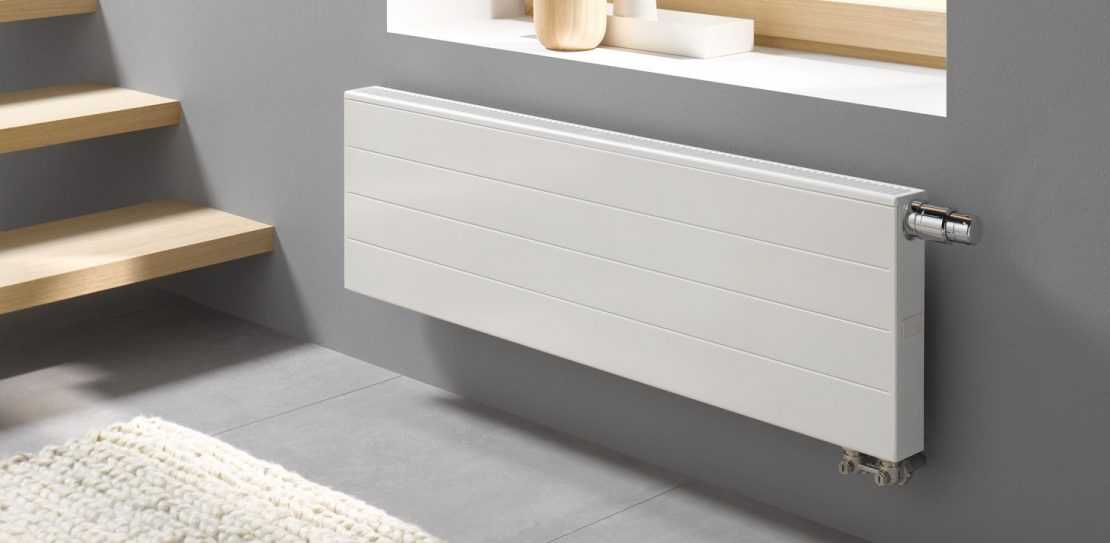 - Как и встраиваемые модели их можно прятать, но не под пол, а в заранее подготовленную нишу на стене. Этому способствует небольшая высота и компактность изделия. Наиболее выгодным местом для такого случая эксплуатации считается место под окном.
