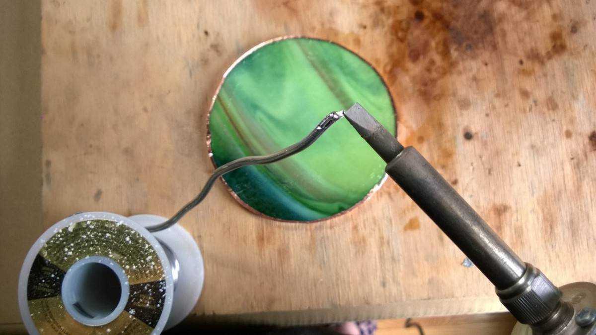 - Когда паяльник разогрелся до рабочей температуры, его жилой прикасаются к припою и канифоли. Рабочая поверхность обильно должна быть покрыта растопленным оловом.