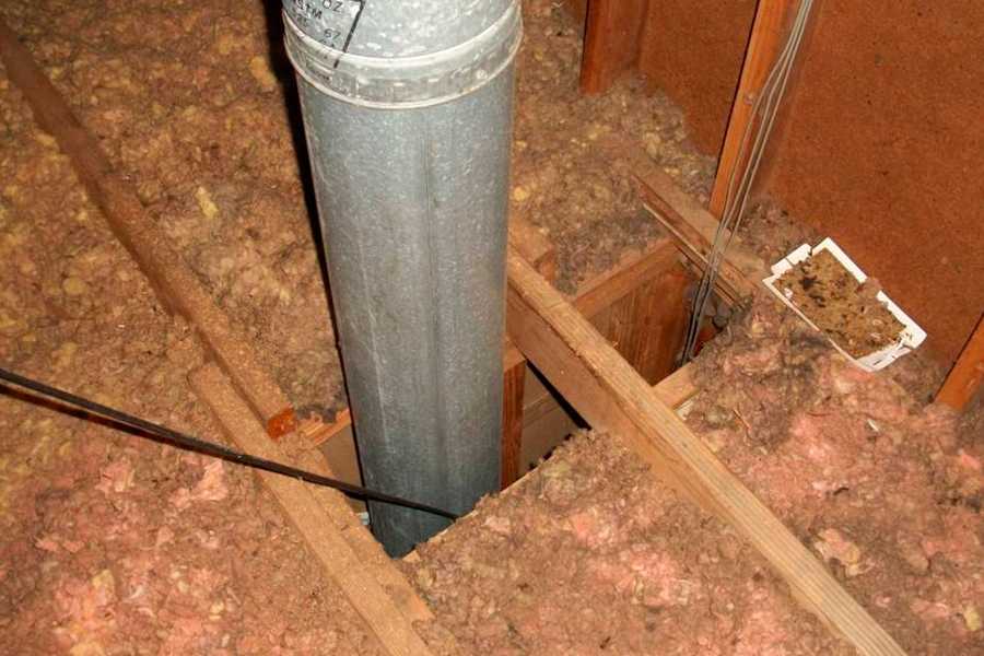 Еще часто допускают опасную ошибку, плохо рассчитывая расстояние между стропилами для прохода трубы, которое не соответствует норме