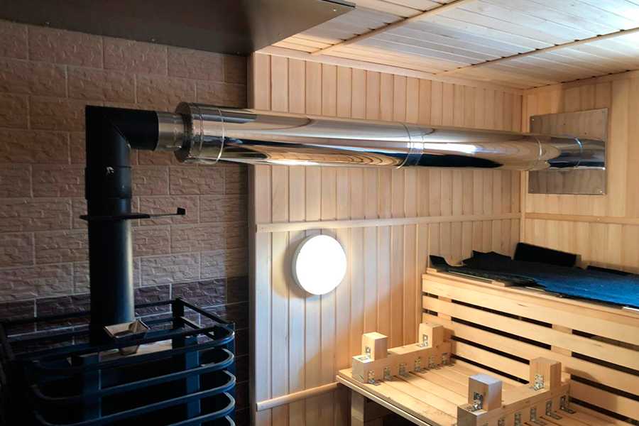 - материалом для изготовления трубы должна быть только нержавейка — обычная сталь быстро выгорит и создаст опасность отравления людей в бане;