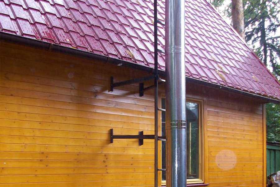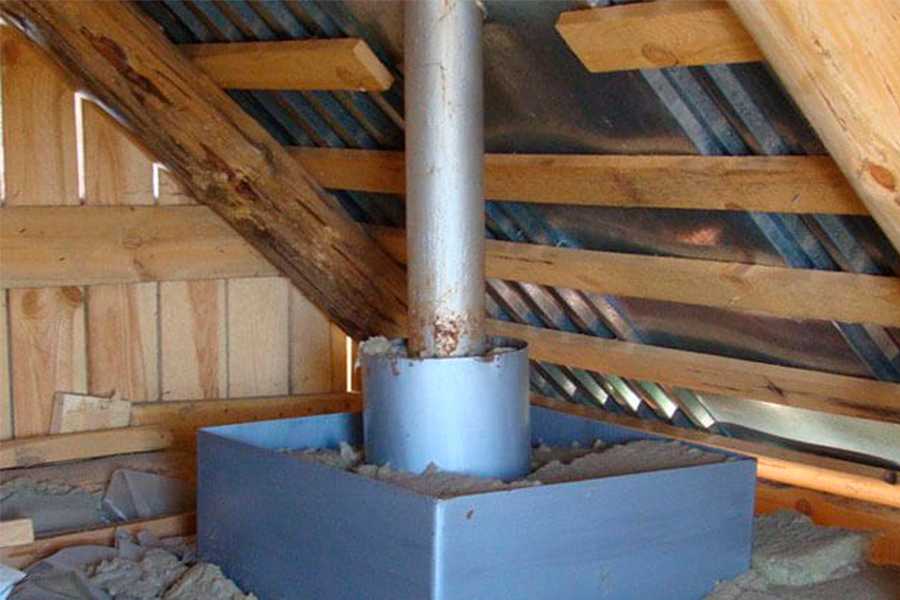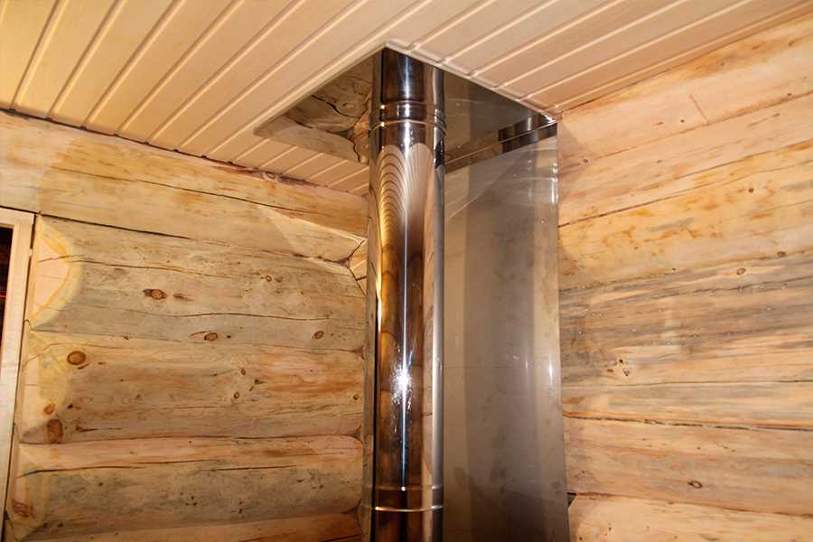 Как правило, кровля бани делается из легковоспламеняющихся материалов, поэтому важно обеспечить должный уровень пожарной безопасности в месте прохода печной трубы. Последовательность действий можно описать таким образом: