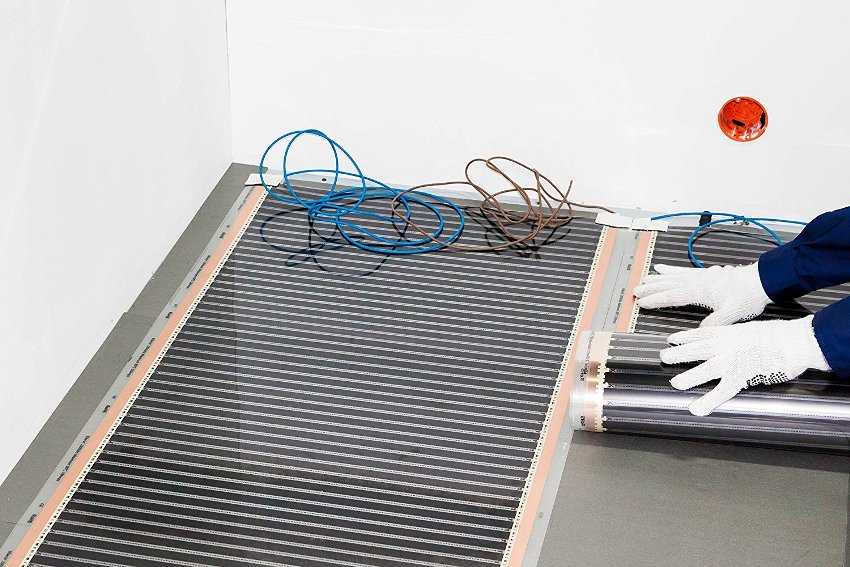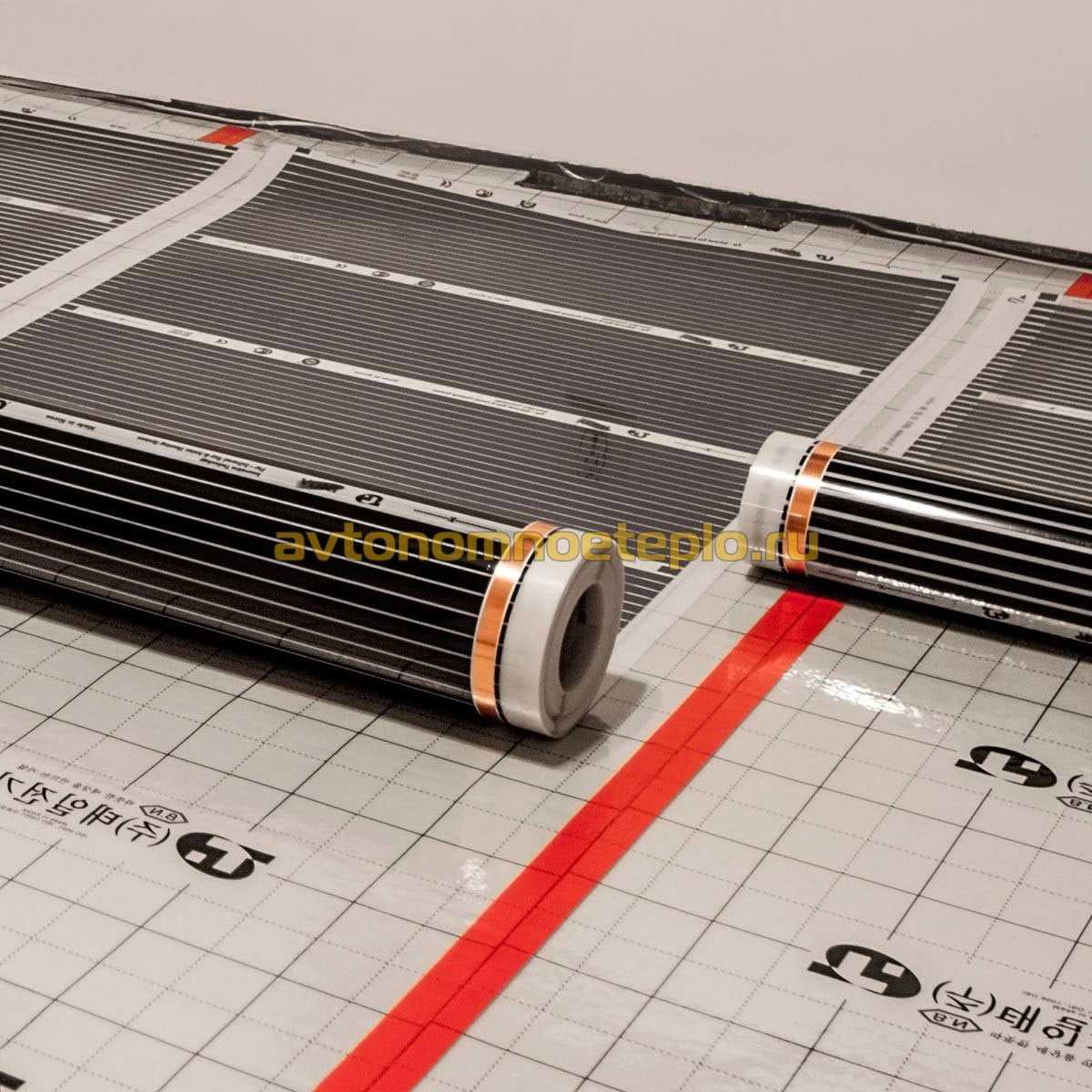 Инфракрасную пленку следует укладывать встык, перехлест полос пленки при монтаже недопустим. Ее следует надежно закрепить скотчем, не допуская повреждений