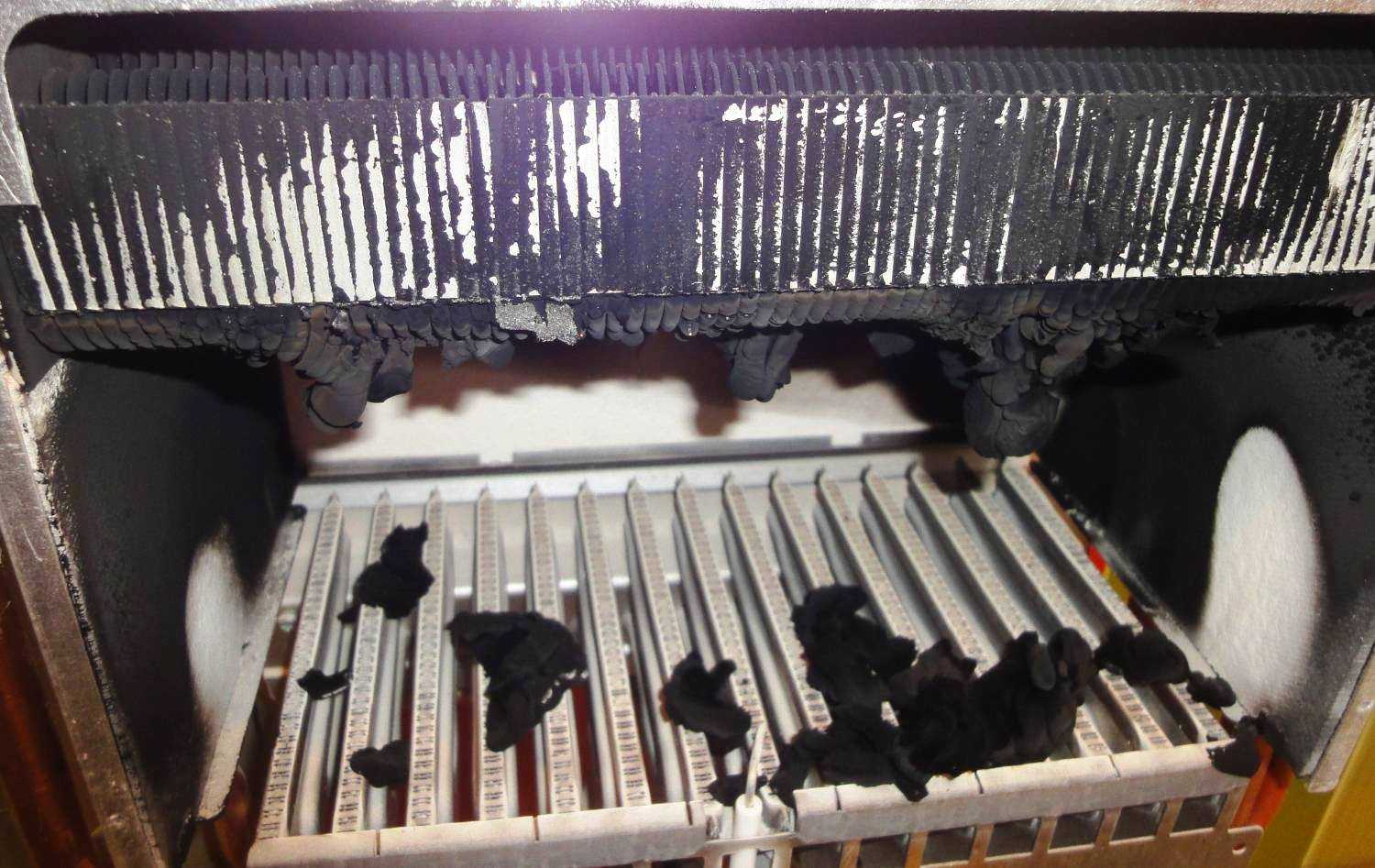 Дисбаланс смеси горючее-кислород может возникнуть по ряду причин. Отверстия газовых горелок могут забиться сажей и тогда горючее подается к горелке неравномерно. Когда пламя сжигает сажу, видимое температурное излучение становится оранжевым. Также может быть установлен неподходящий тип горелок для газа, который вы используете жидкий пропан и природный газ имеют разные требования к соотношению воздух-топливо. Воздушная заслонка может быть неправильно подогнана по размеру или может быть повреждена, не давая нужному количеству кислорода смешаться с газом. При недостаточной подаче кислорода лишь часть газа превращается в голубое пламя высокой температуры, остаток же уходит в оранжевое пламя более низких температур.